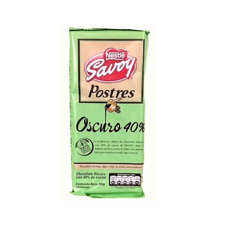 La tableta de Chocolate oscuro Savoy 40% cacao es perfecta para la repostería.