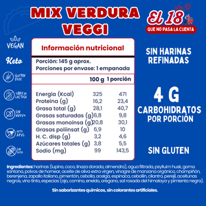 Empanada veggi mix verduras dieciochera, (keto, sin lacteos, sin gluten) 145 g 1 unidad