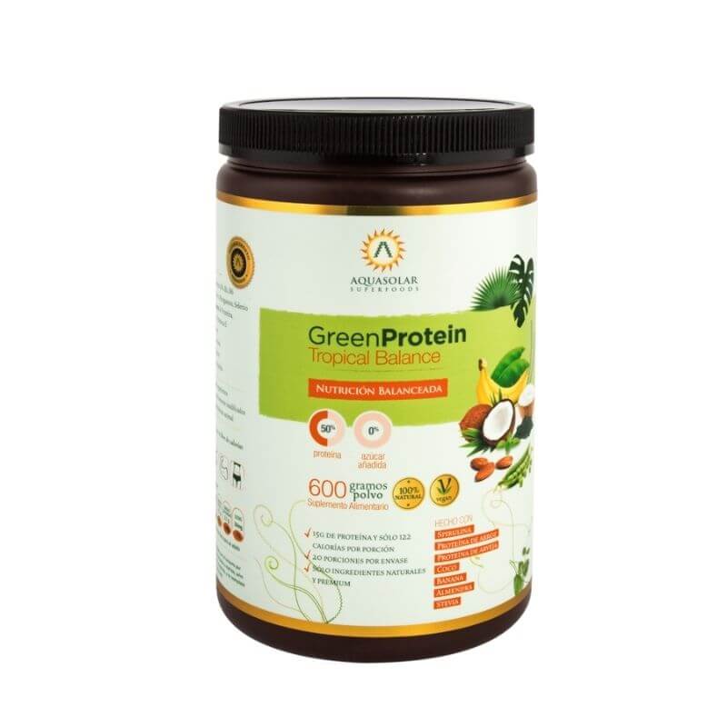 Green Protein Tropical Balance es un delicioso y nutritivo batido en base a superalimento vegetales que entrega una completa nutrición para un cuerpo atlético, energético y sano. Gran aporte de proteína en cantidad y calidad gracias a su contenido de Spirulina, proteína de Arveja y Arroz.