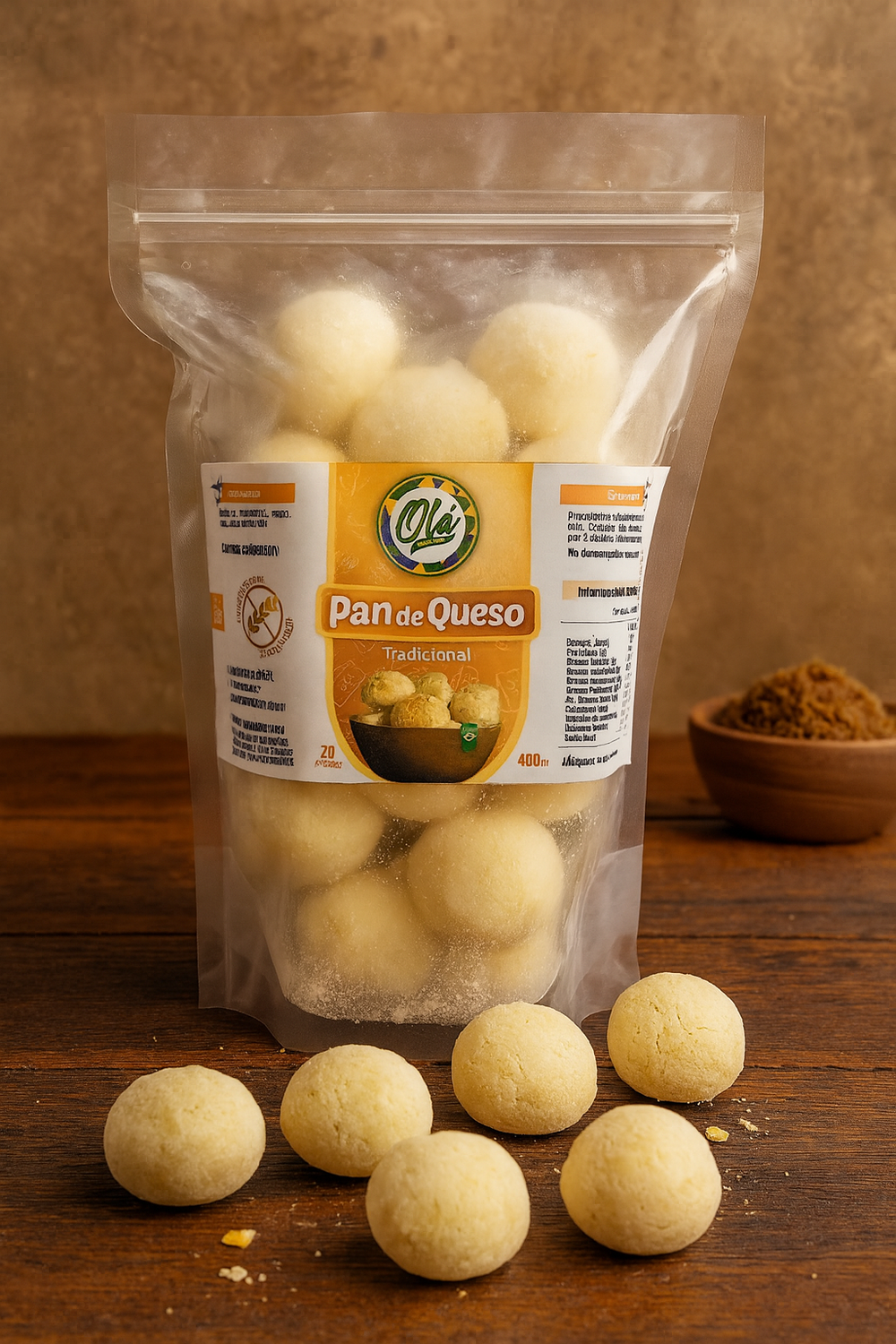 Mantener a -18 grados (congelador) hasta el momento de hornear. Precalienta el horno a 180°C y coloca los panes de queso en una bandeja.