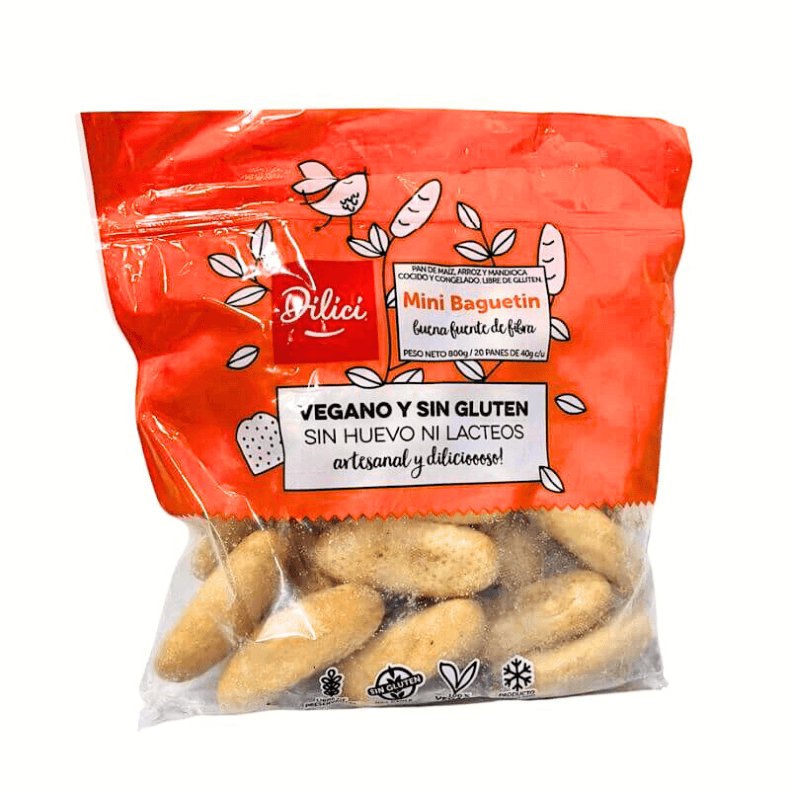 - Delicioso mini baguetin Dilici certificado sin gluten, sin huevo, sin soya, sin leche ni otros lacteos.