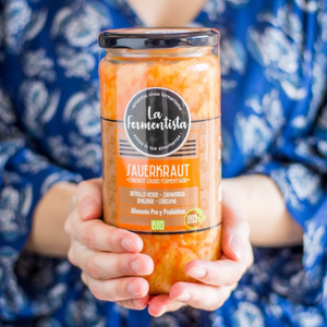 Chucrut de repollo fermentado de repollo verde, zanahoria, cúrcuma, jengibre y sal de mar.