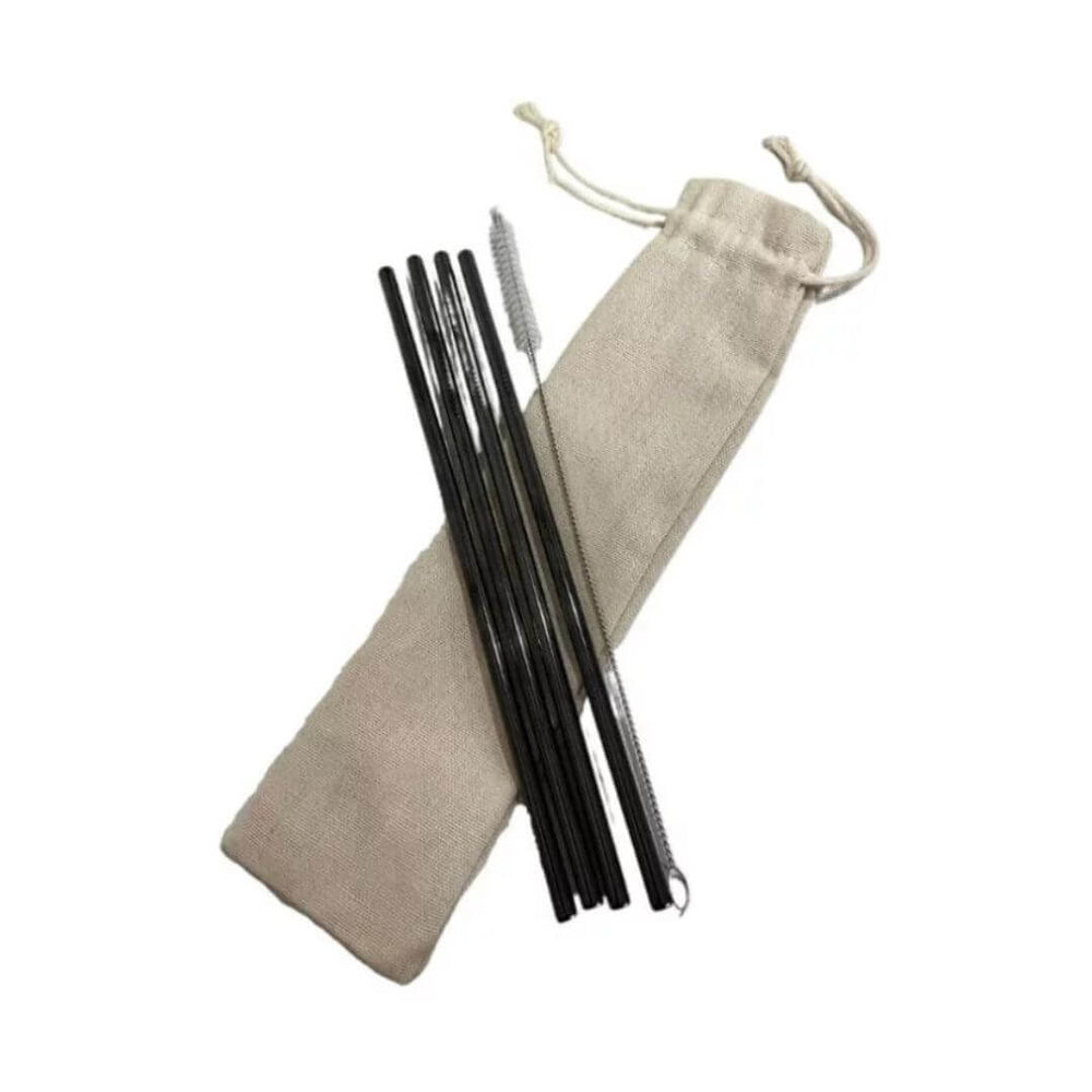 Bombillas 100% ecológicas de acero negro que no altera los sabores y ayudan a reducir el consumo de plástico.