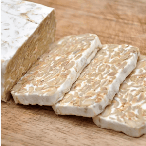El tempeh es originario de Indonesia. Es uno de los alimentos más consumidos por veganos y vegetarianos, junto con el tofu o el seitán. Es un producto de origen 100% vegetal elaborado a base de soja y moho. Consiste en soja blanca cocida y fermentada, mediante un hongo llamado Ryzopus Oligosporus y un detenido control de la temperatura.