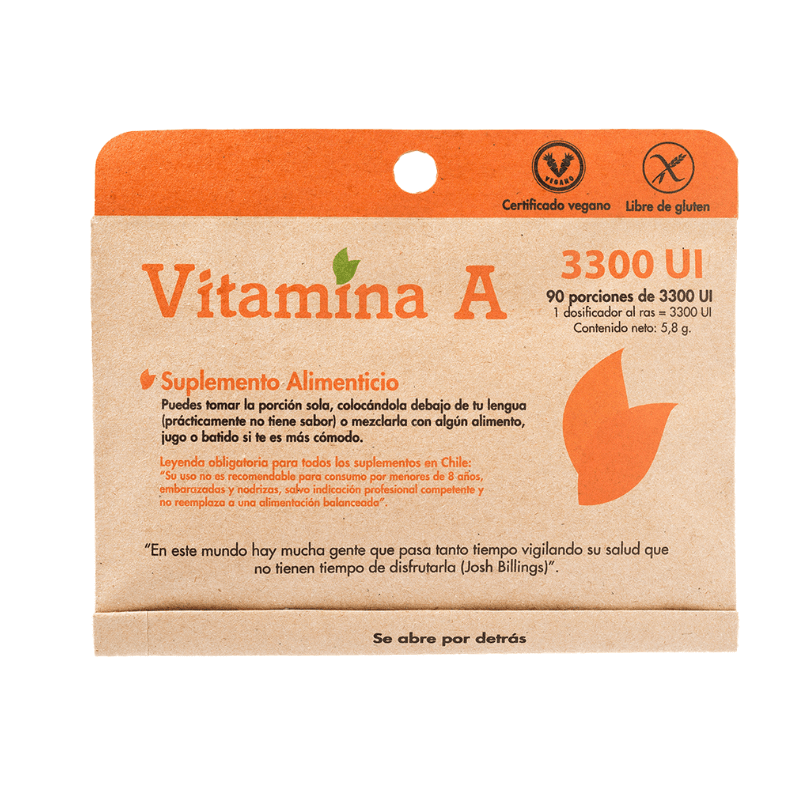 La vitamina A es un antioxidante que ayuda en la salud de la vista y el sistema inmune. Esta vitamina tiene una baja biodisponibilidad en los vegetales, por lo que se recomienda que si estás en una alimentación vegana o vegetariana incluyas a tu alimentación este suplemento 100% vegetal y apto para veganos. Sin gluten.