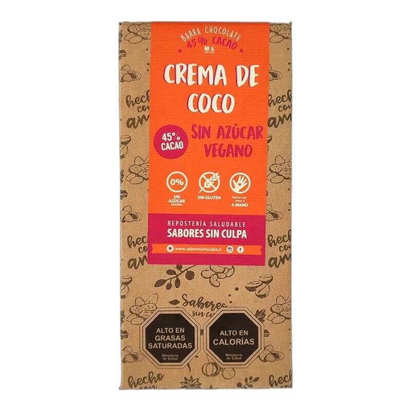 - Barra de chocolate amargo 45% cacao y crema de coco. Exquisita combinación para llevar a cualquier parte.