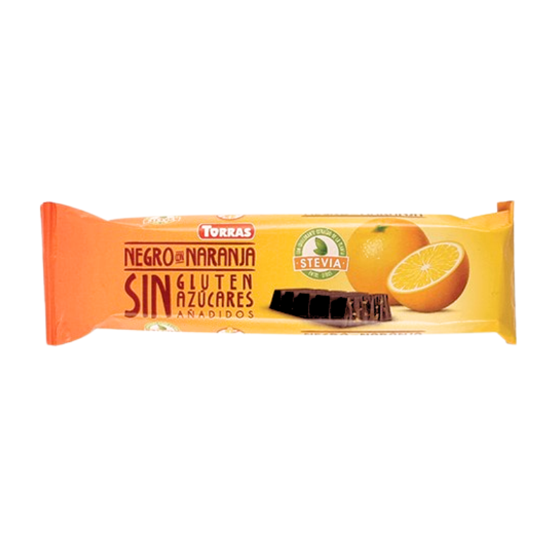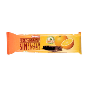 Esta deliciosa barrita combina el intenso sabor del chocolate negro con trocitos de naranja endulzado con stevia y eritritol.
